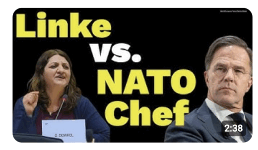 NATO Chef Rutte verteidigte das US-Vorgehen in Syren, Gaza und Grönland. Die linke Europaabgeordnete Özlem Alev Demirel konfrontiert den NATO Chef mit seiner Unterwürfigkeit gegenüber den Verbrechen des US-Präsidenten.